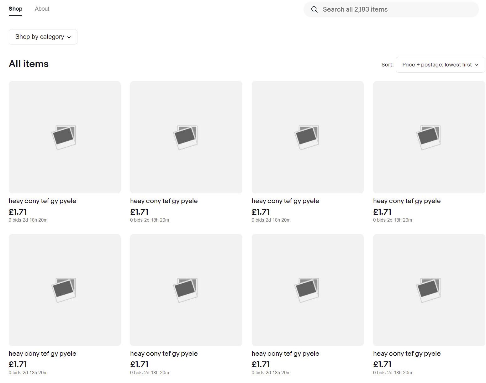 Another interesting commonality revealed itself when I sorted listings by lowest price first - all of the compromised accounts showed what appear to be "placeholder" listings where the scammers create the listing using a gibberish title, no picture, and low starting price.