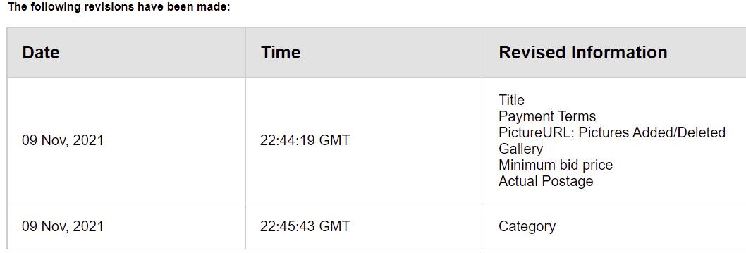 To take it a step further, the placeholder listings all use a common pattern both in the original format of the listings and the way they are then revised and updated with the scam info. Again, there is absolutely zero reason eBay couldn't use technology to track and identify listings fitting those patterns.