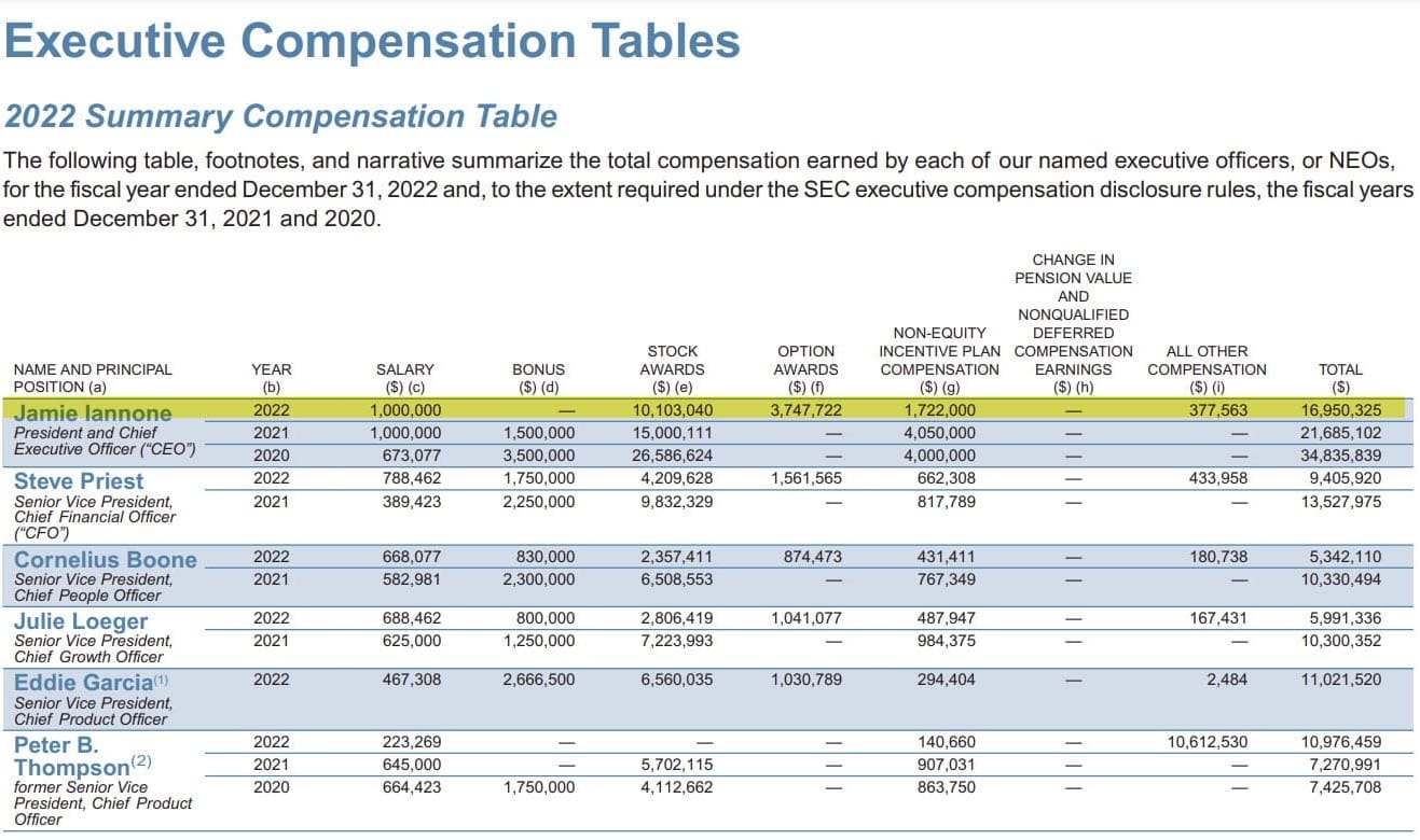 CEO Jamie Iannone earned total compensation of $21,560,669 in 2023, up from $16,950,325 in 2022, mostly due to stock and option awards plus non-equity incentive plan compensation.