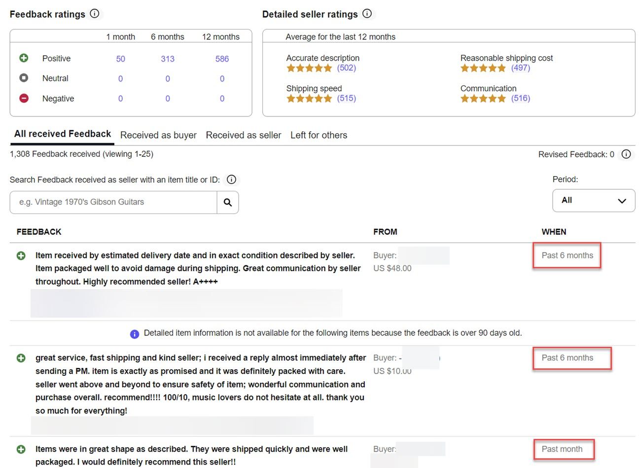 Then I realized in the past 90 days it's showing like 10 feedback total, and then it says they are all over 90 days old. I noticed they picked all the very long feedback to show everyone and filtered all the seemingly irrelevant ones.