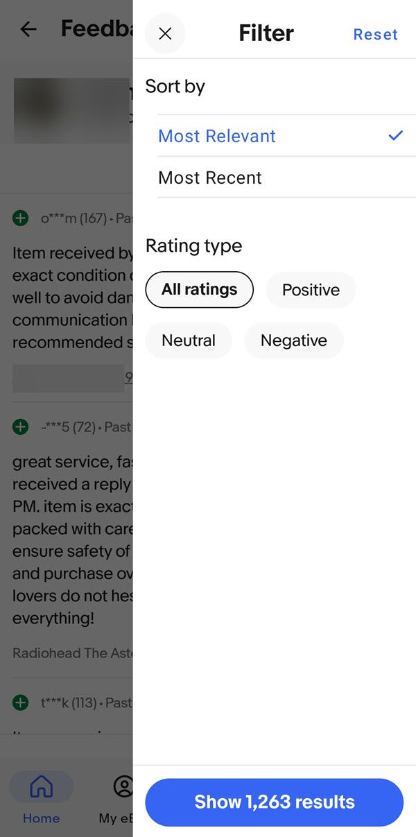 eBay is testing changes to how feedback is displayed to users, defaulting to "most relevant" sort order instead of "most recent" and apparently removing "feedback left for others" all together.
