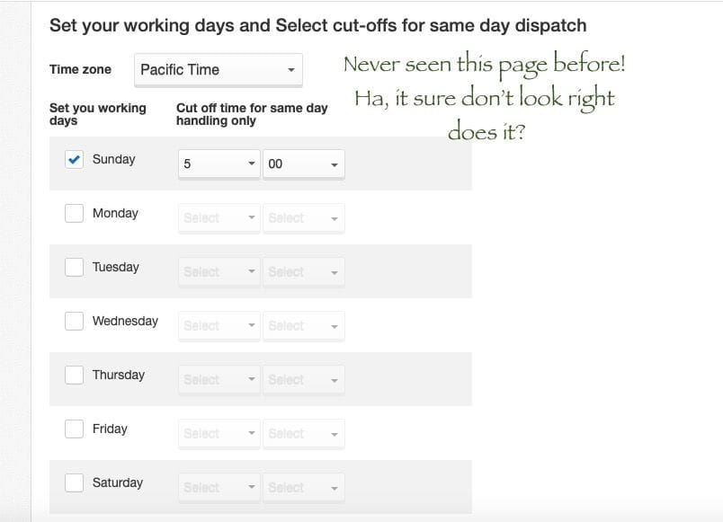 You're not the first seller I've seen with Sunday checked off that wasn't familiar with that page. So maybe you checked it by accident? Or maybe there's some setting on eBay that's interfering and causing that box to be checked without sellers knowledge. I don't know. BUT at least I can tell you how to fix it.