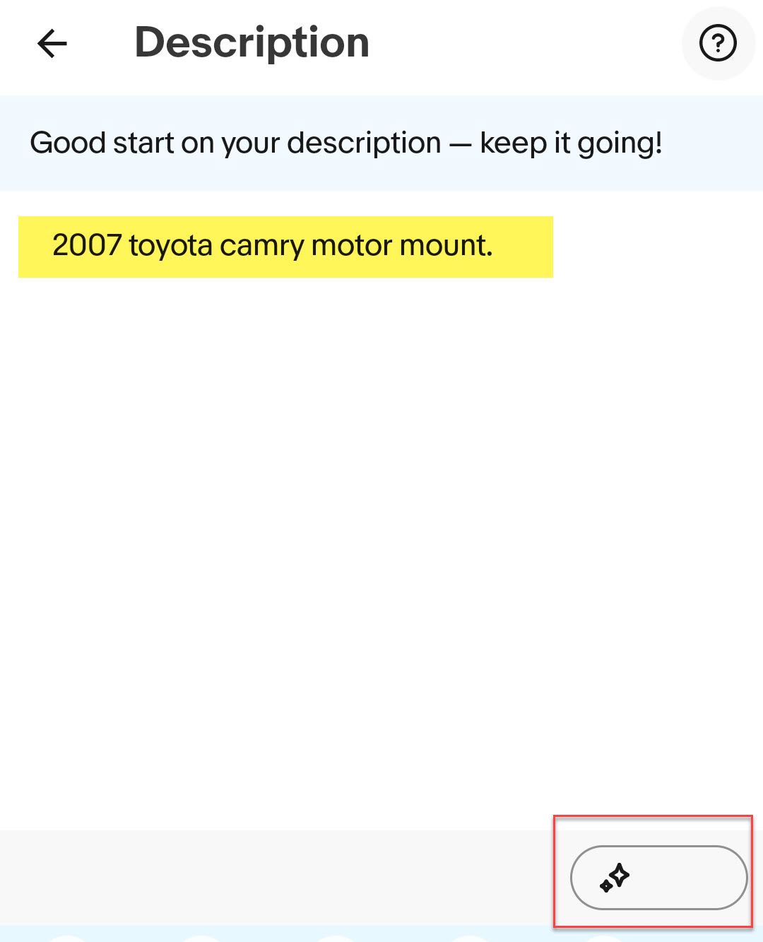 However, a bug in the client logic exposed the experience without the surrounding service details (button label, undo button, banner explaining the optional generative model, etc.) which created a broken user experience and confusion when found by sellers who had just download/installed the Android update.