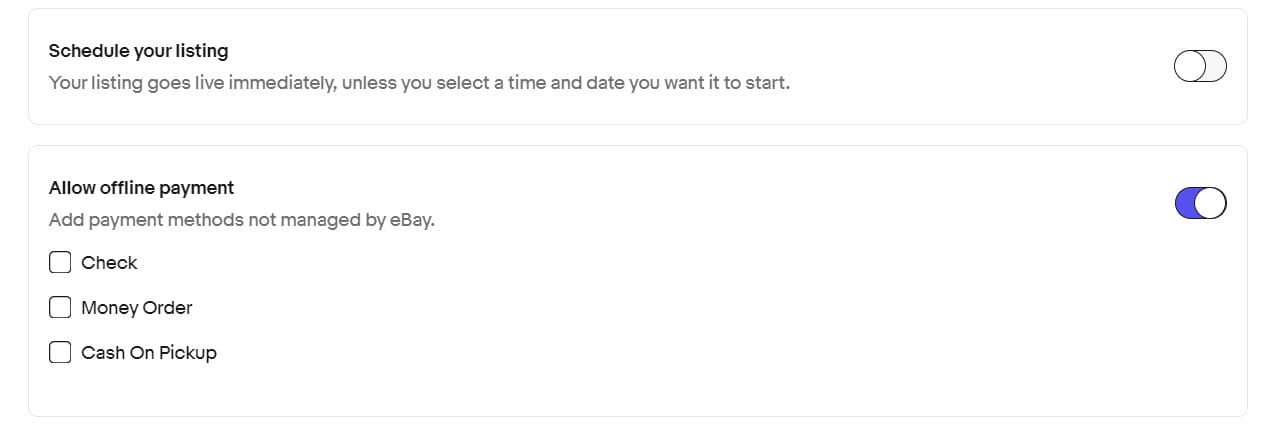 Previously, those offline payment methods were only still available in limited categories but now it appears the option is on the listing form for all categories without limitation.