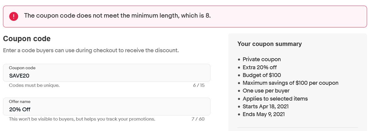 Hopefully this can save some other sellers the aggravation of going all the way through the set up process only to get an error message when you try to start your promotion.