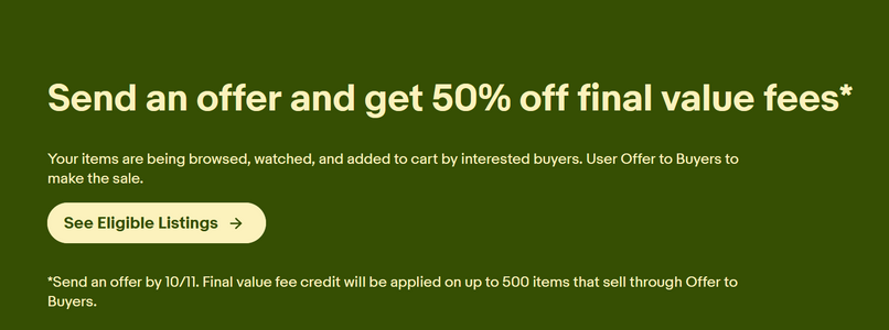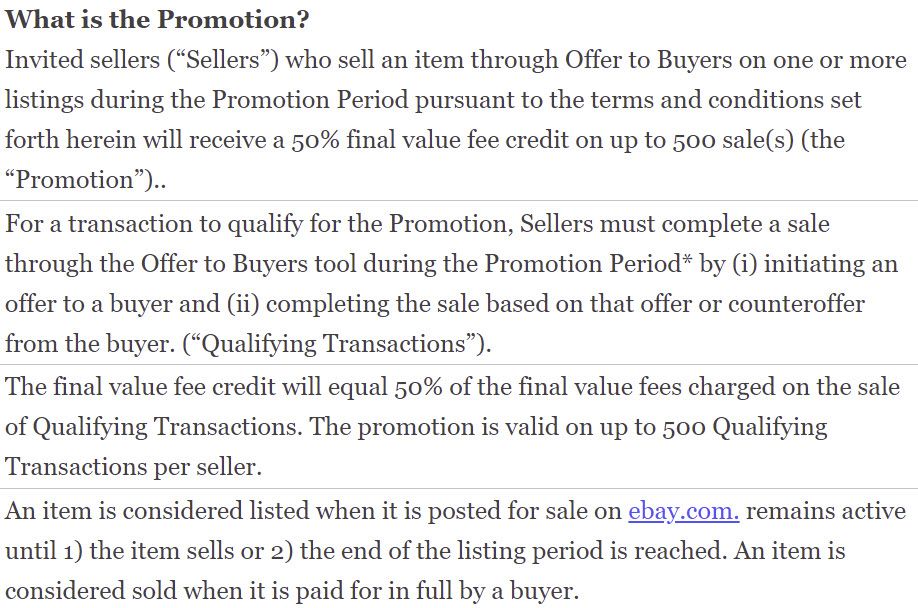 It's also very disappointing to see things like this - eBay recently had a promotion running that offered 50% off Final Value Fees if you used the Seller Initiated Offers feature. They even splashed a banner about it at the top of the highest traffic section of the eBay community.