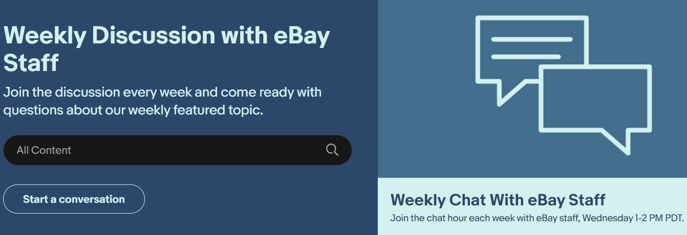 Ultimately, the Community is a peer to peer support network, not a customer support channel. The Weekly Chat is our team's commitment to address questions that you may have about eBay, and be frank with you when the questions, concerns or comments you share with us are out of scope.