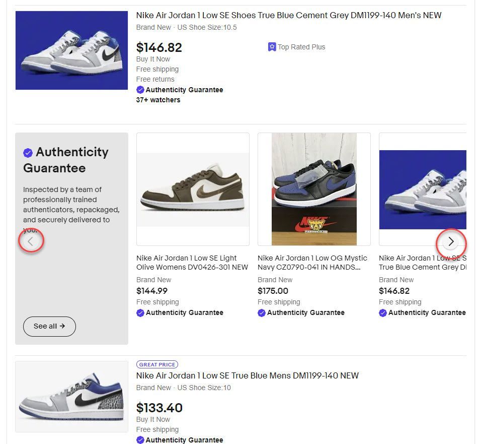 My surmise is that eBay may be considering inserting scrolling ad carousels at the top, middle, and bottom of each search page - similar to this module that they currently use to show items with Authenticity Guaranteed if you search for a specific shoe.