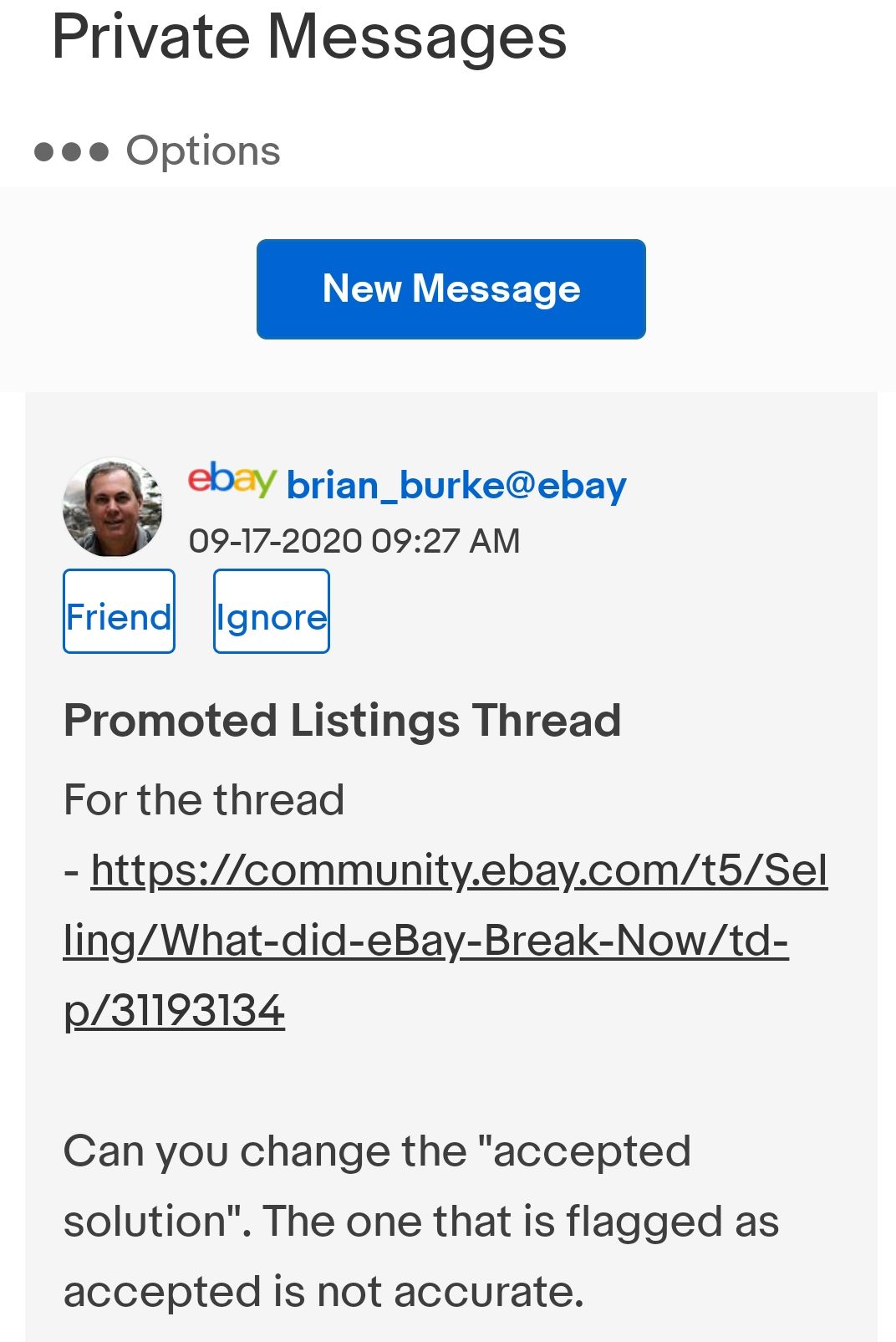 eBay can't have it both ways here. Either the community is a member to member discussion forum with eBay employees as occasional referees to enforce the rules and host a weekly chat hour or they are providing official support services (including but not limited to determining "correct" answers to member questions about eBay policies and procedures) with all of the responsibility and accountability as any other official company support channel.