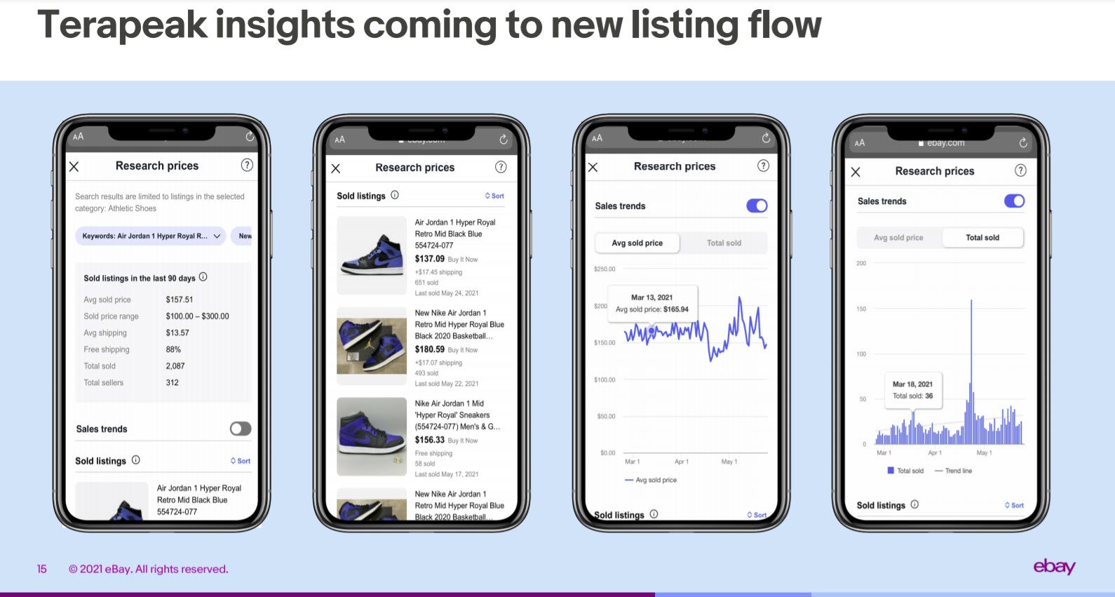Terapeak Research will soon be able through the API and in the new listing flow on the eBay mobile app.