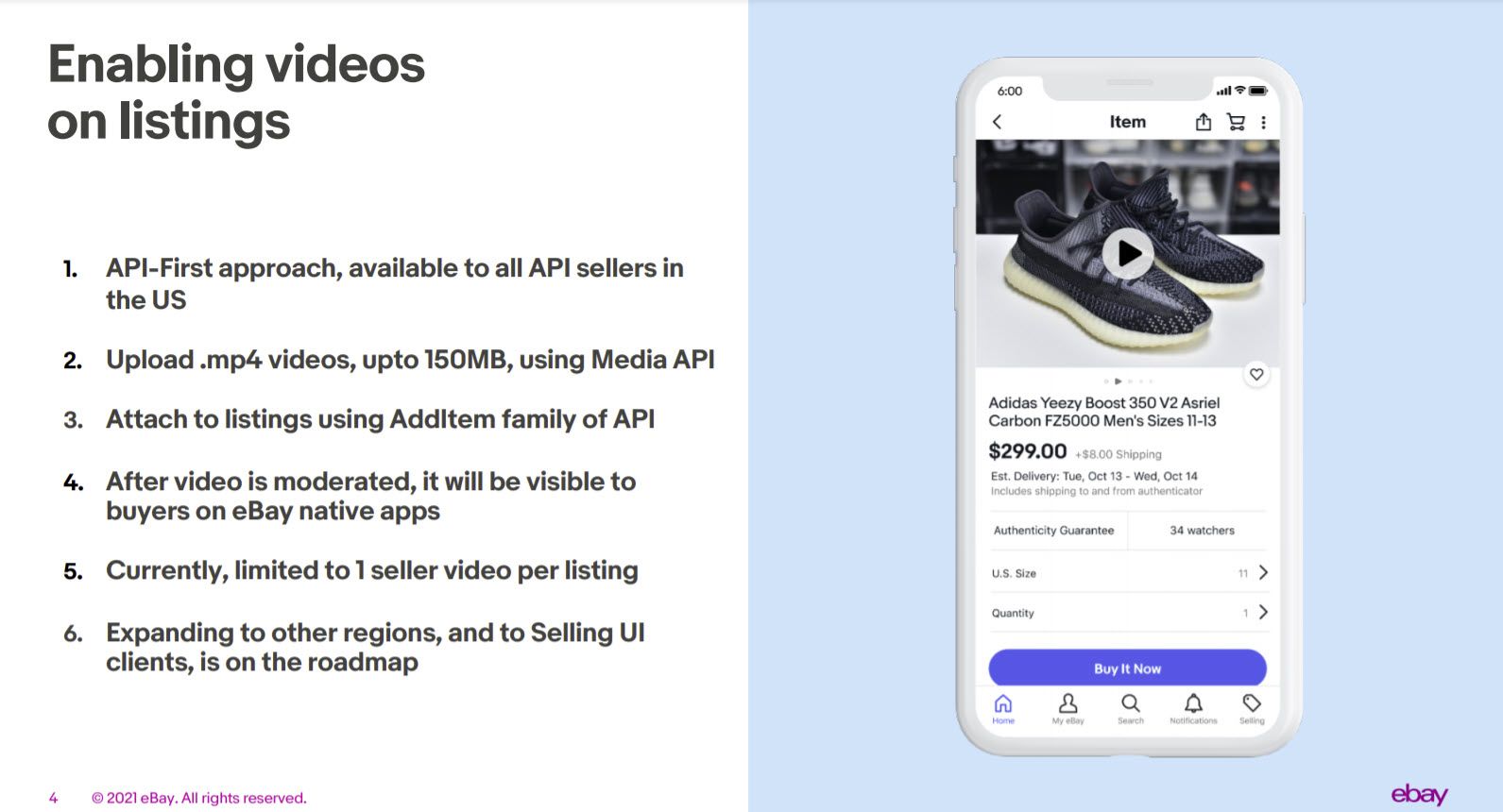 Mike starts out with videos for listings which can currently only be enabled through the eBay API.