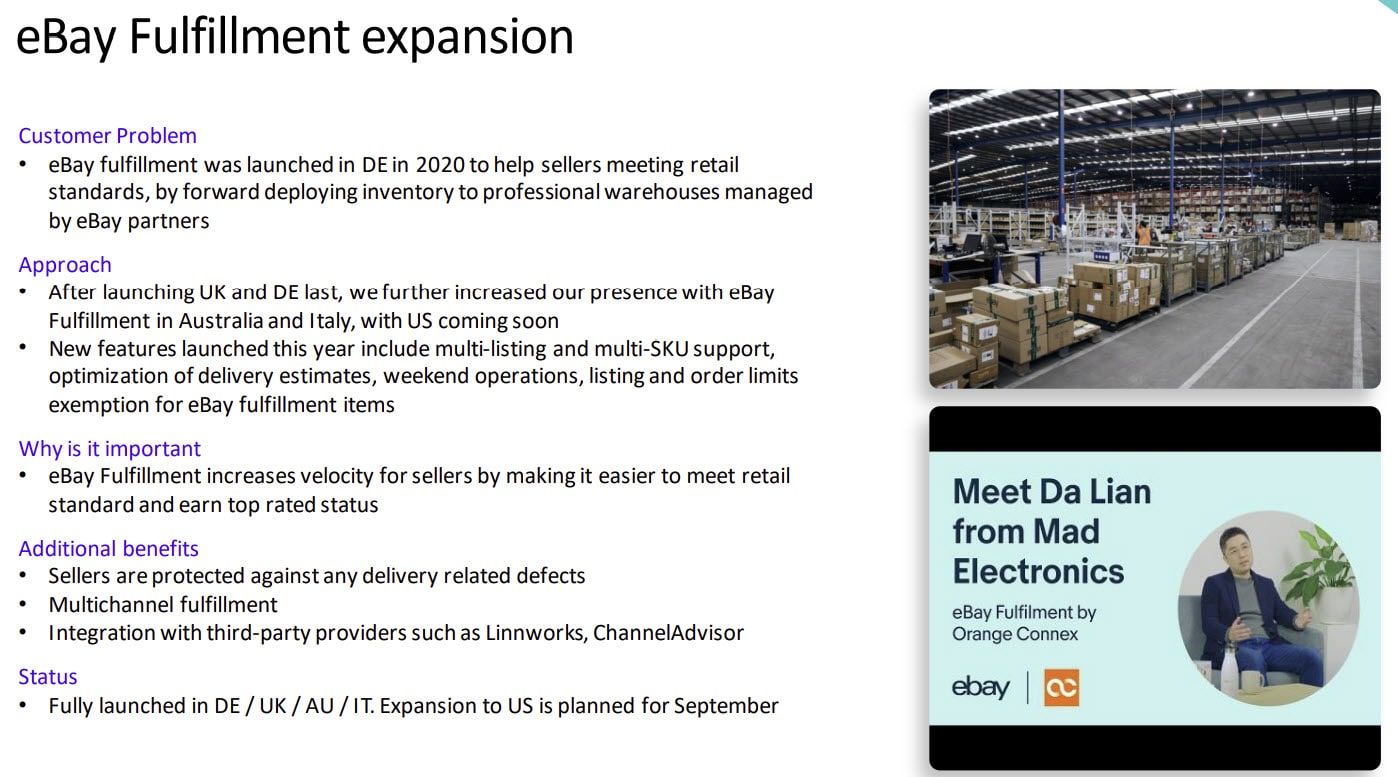 He also provided an update on the expansion of eBay Fulfillment via OrangeConnex with US coming soon.