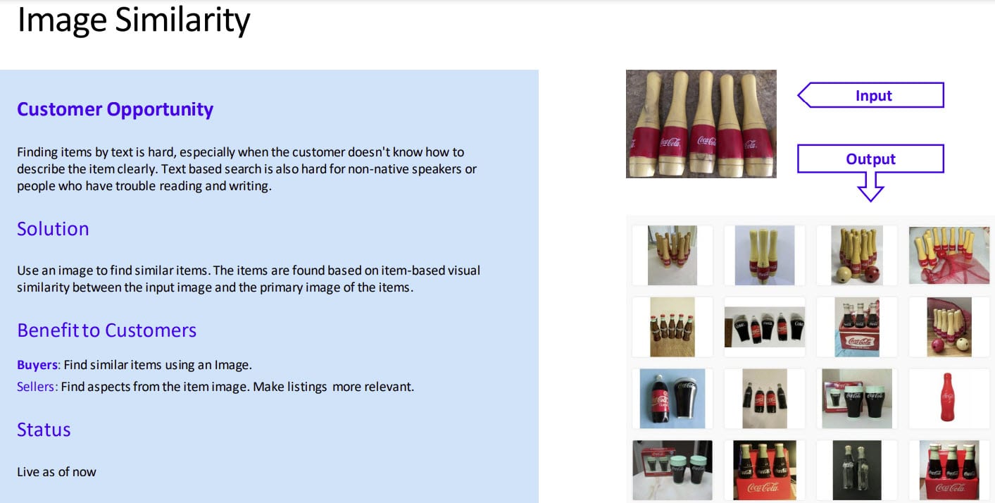 Nitzan gave updates on some of the core AI offerings available to developers including Image Similarity for search by image, text translation and confirming eBay launched AI to handle moderation for seller videos uploaded to listings in the last month.