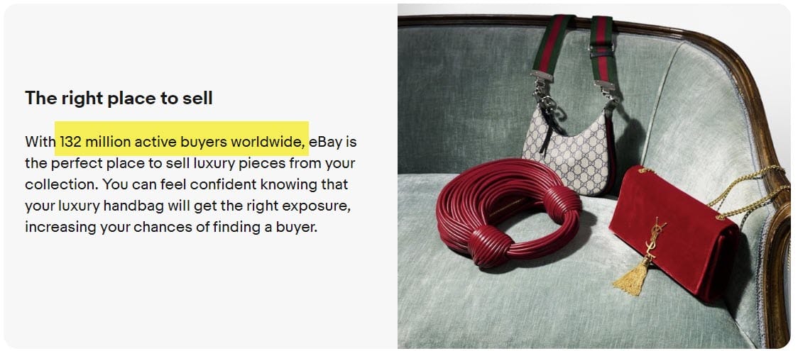 And that's not that only discrepancy - this page also claims that you can reach 155 Million active buyers across the world with the consignment program.