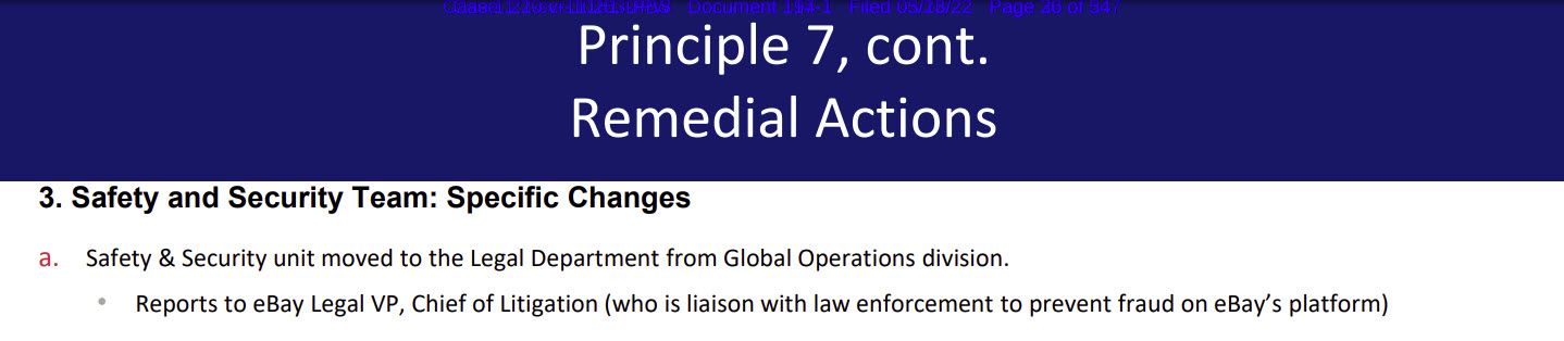 That unit now reports to eBay Legal VP, Chief of Litigation, who of course reports to the Chief Legal Officer - meaning the entire security apparatus at eBay now resides ultimately under Oh Huber's purview.
