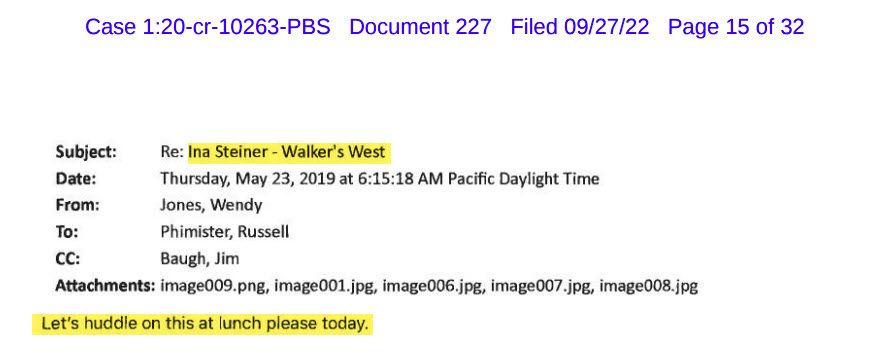 Baugh also “prepared” Stockwell for the meeting by suggesting she only discuss what she had seen personally (which was nothing in Boston or Natick). He also instructed Stockwell to lie about the nature of her relationship with Baugh because it would not reflect well on her (which she then did). Baugh ended the relationship almost immediately after the proffer.