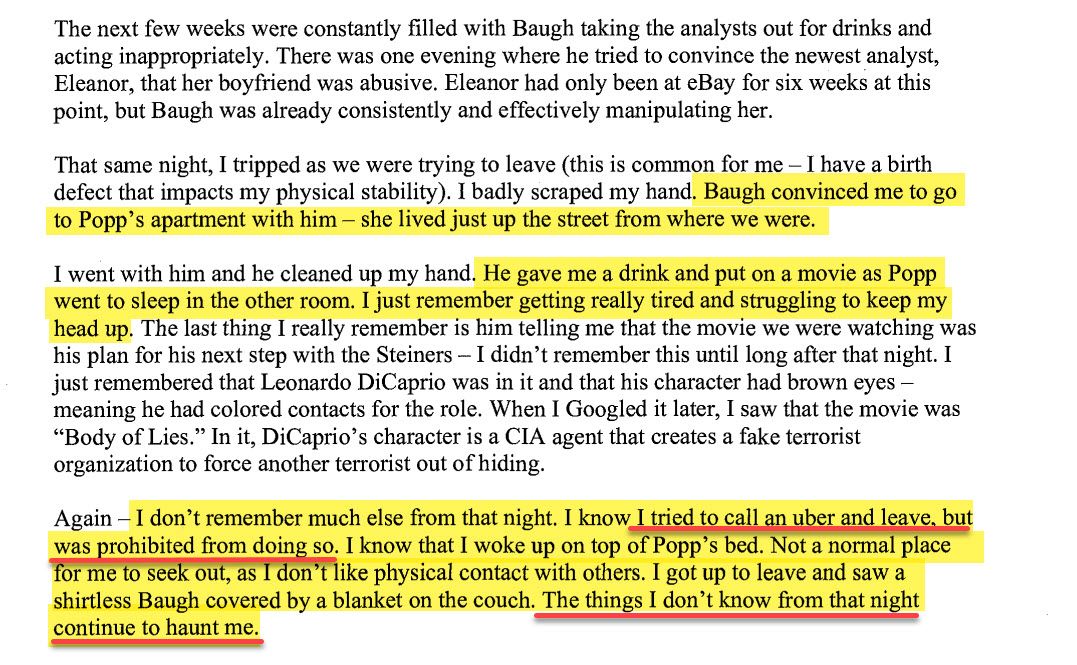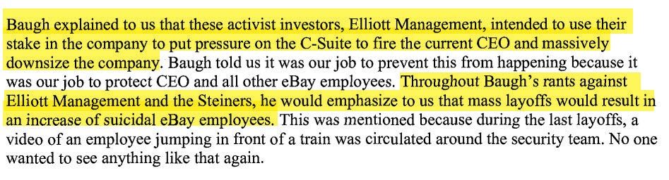 ...The seeds of the tragedy that unfolded at eBay causing havoc, heartache, and fear for V1 and V2 disseminated from Baugh’s bizarre, unorthodox and frankly, inappropriate and dangerous work environment.