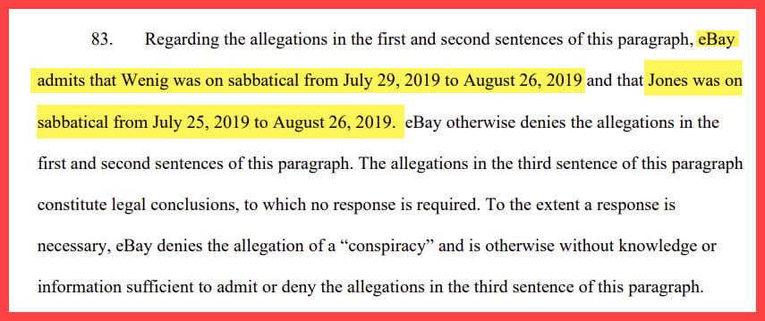 At the same time, Baugh was also separately texting with Wenig about his efforts to out unsuckEBAY and then copied Jones for "visibility."