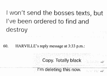 As set forth below, a series of text messages followed between Executive 2 and Baugh, beginning with Executive 1 's suggestion to Executive 2 that "we ... take her down".