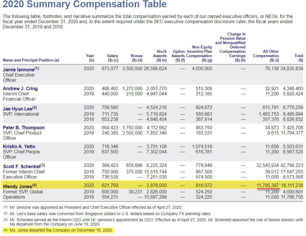 The internal investigation also found "no wrongdoing" in regards to Wendy Jones, despite the fact she was Baugh's immediate supervisor. Not only that, she was allowed to continue in her role as SVP Global Ops through December 2020 - well into current CEO Jamie Iannone's first year back at the company.