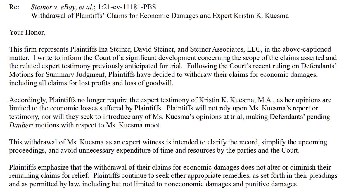 Source: Steiner et al v. eBay Inc. et al 1:21-cv-11181 Doc 711