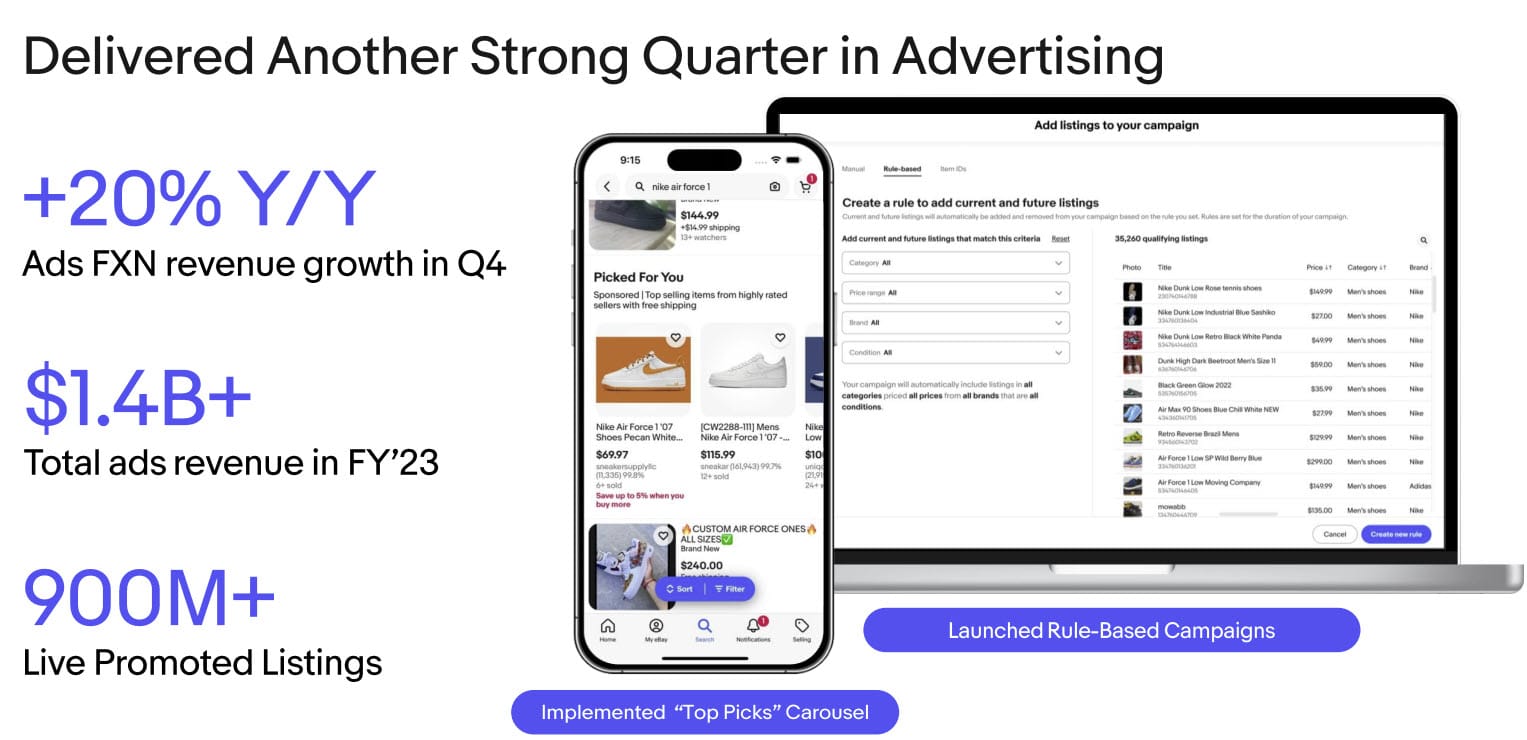 First party Promoted Listings ads continue to be a major source of revenue growth for eBay, responsible for $368 million of revenue in the fourth quarter and over $1.4 Billing in revenue for 2023.