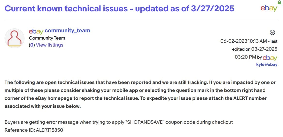 And he did in fact add it to the ongoing technical issues post in the community, which again would indicate eBay is treating this as a technical issue rather than an intentional change.