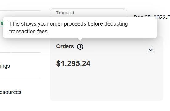 Orders: This shows your order proceeds before deducting transaction fees.