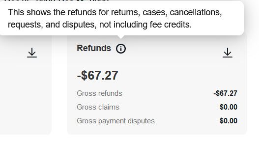Refunds: This shows the refunds for returns, cases, cancellations, requests, and disputes, not including fee credits.