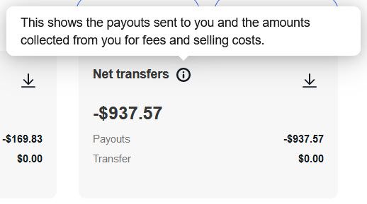 Net Transfers: This shows the payouts sent to you and the amounts collected from you for fees and selling costs.