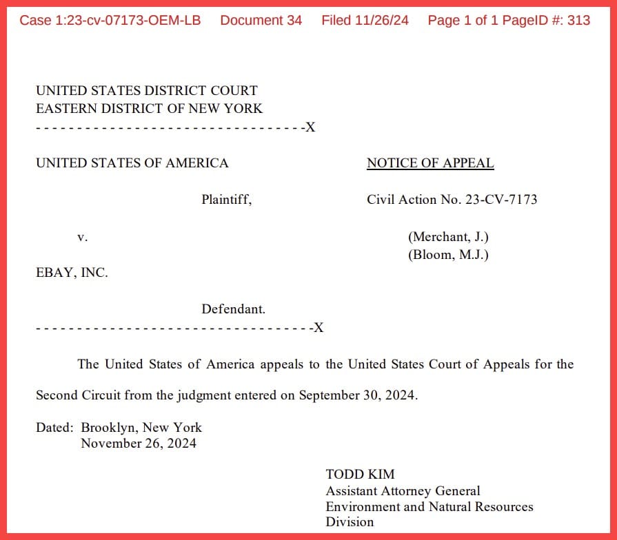 Neither eBay nor the DOJ have responded to request for comment as of time of publishing - stay tuned for updates in this developing story!