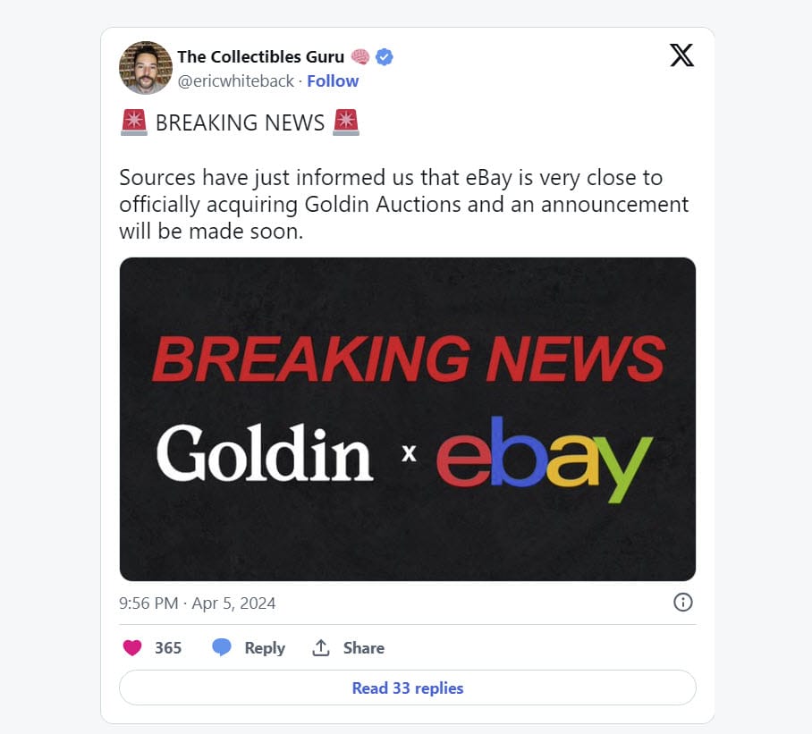 eBay Taps Ex-Collectors VP As Trading Card GM - Is Goldin Auctions Acquisition Next?