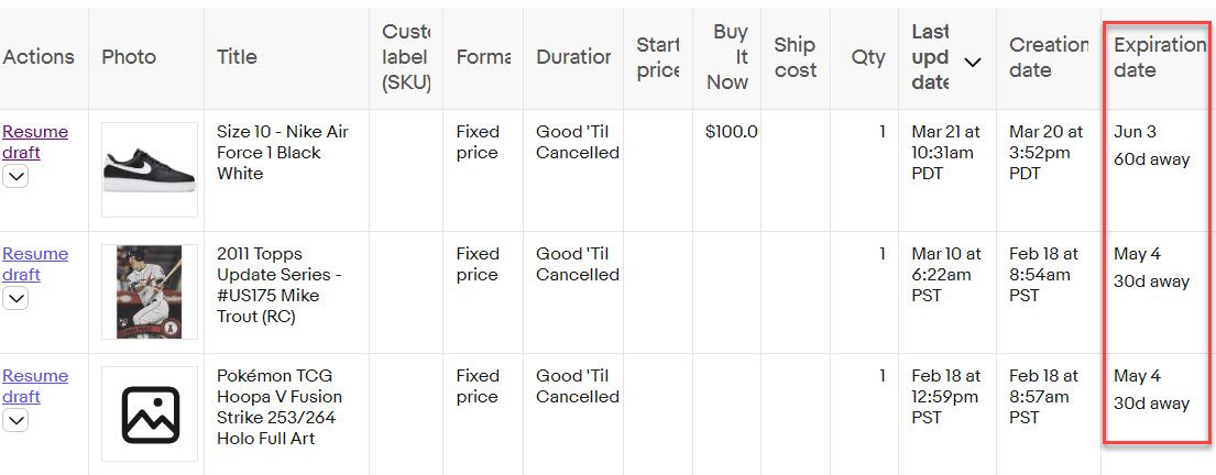 eBay is making it easier for sellers to see when their draft listings will expire to avoid losing their hard work to the 75 day automatic deletion clock.