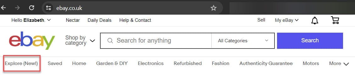 I first noticed it while browsing the eBay UK home page today, with a category navigation link to Explore.