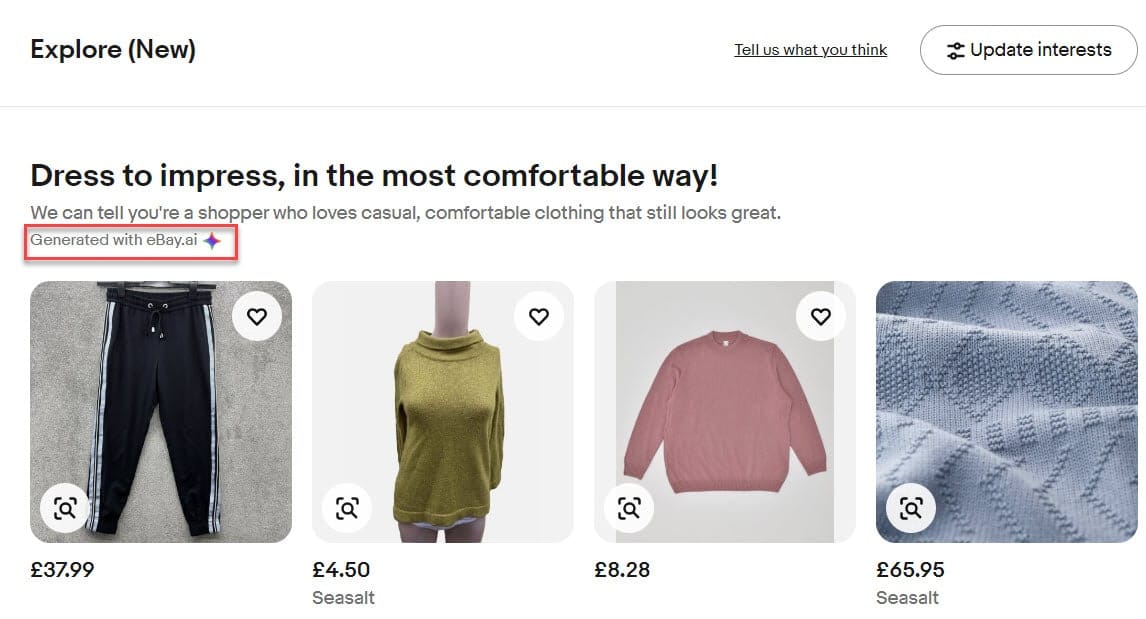eBay has launched a new feature called Explore, using AI and visual search to help fashion buyers create curated shopping feeds.