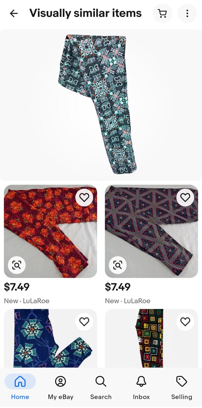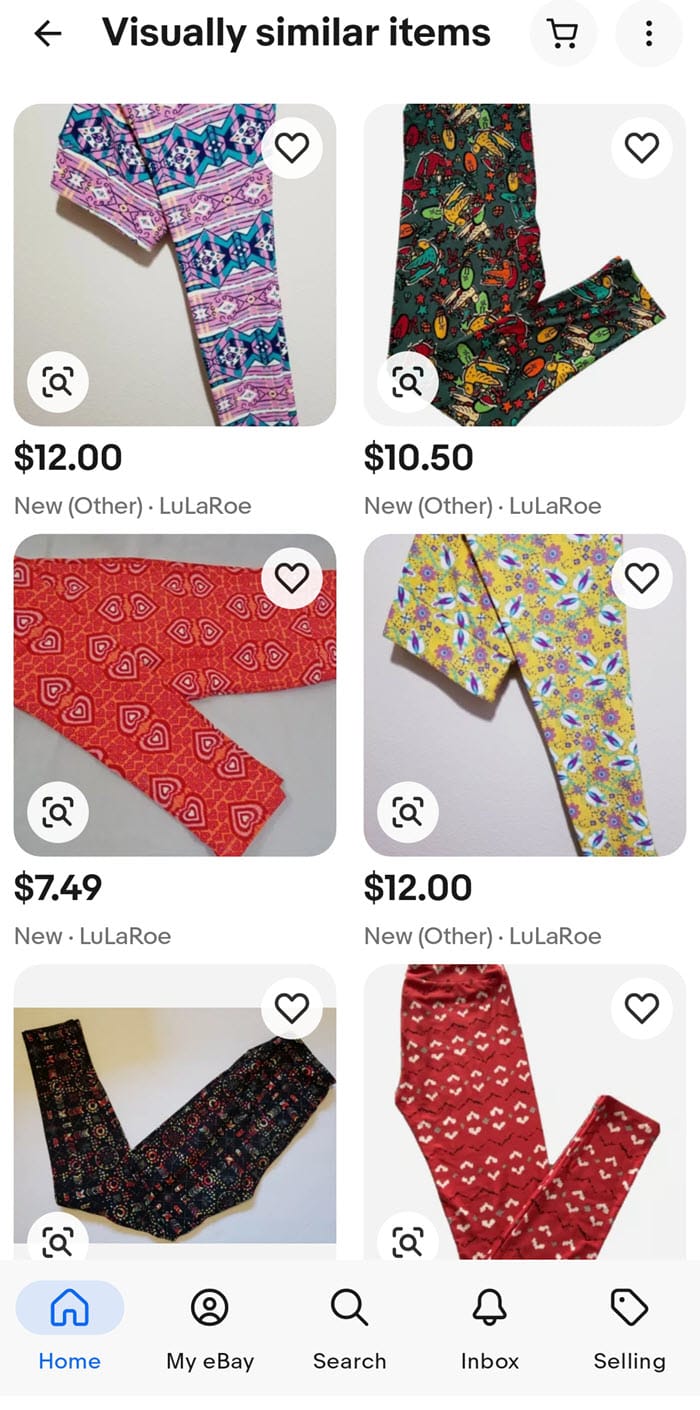 For example, aside from all being the same brand and style, there's quite a bit of visual difference in the colors and patterns it suggested for these leggings.