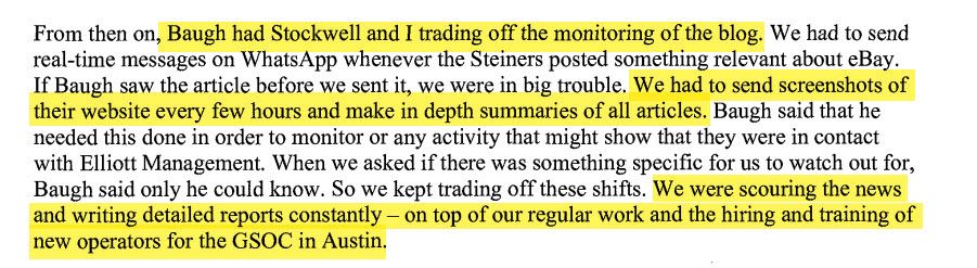 Baugh ordered employees under his purview to maintain around the clock monitoring of EcommerceBytes and to step up efforts to discover the identity of the person behind unsuckEBAY.