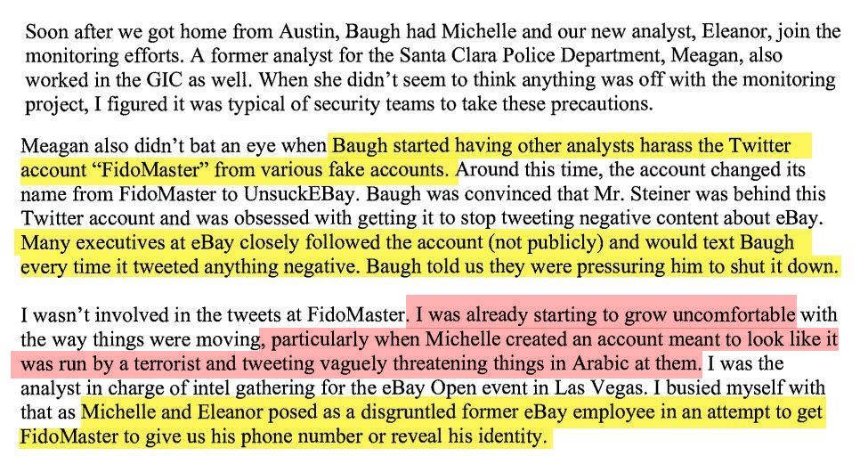But that's a laughable assertion, considering the email mentions Ina Steiner by name and it was sent only one day after Stockwell's email to Baugh with the tweets from Fidomaster/unsuckEBAY.