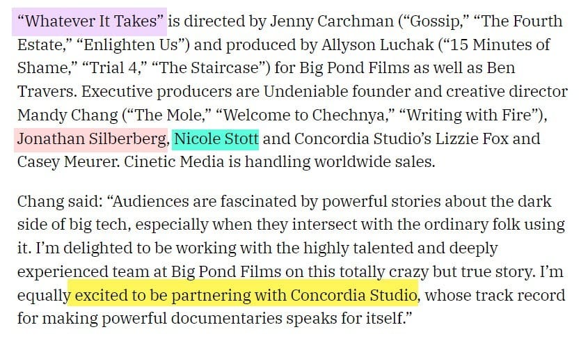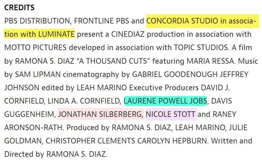 In fact, Whatever It Takes executive producers Jonathan Silberberg and Nicole Stott from Concordia Studio both worked directly with Omidyar's Luminate Media in 2020 to produce A THOUSAND CUTS - a documentary about the CEO/Founder of news site Rappler, Maria Ressa, and press freedom in the Philippines.
