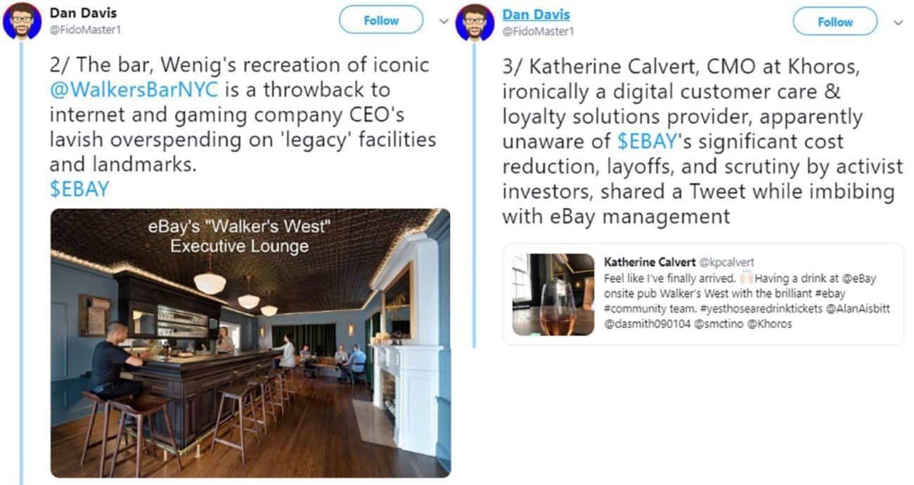 EcommerceBytes and many of their readers seemed to believe at the time that tweet had a defensive tone and was perhaps subtly directed at the activist investors who had been pushing for changes at eBay.