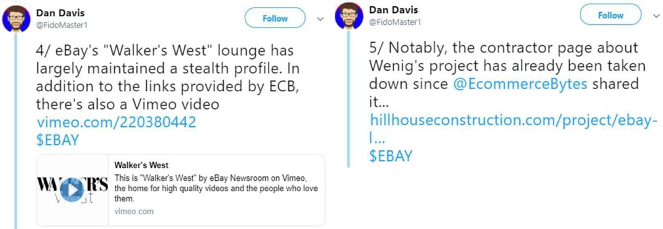 The fact that eBay still hosts videos showing interior tours of Walker's West on their official Vimeo and YouTube channels belies any point the company might wish to make about supposed security threats from the details of the building being publicly available.