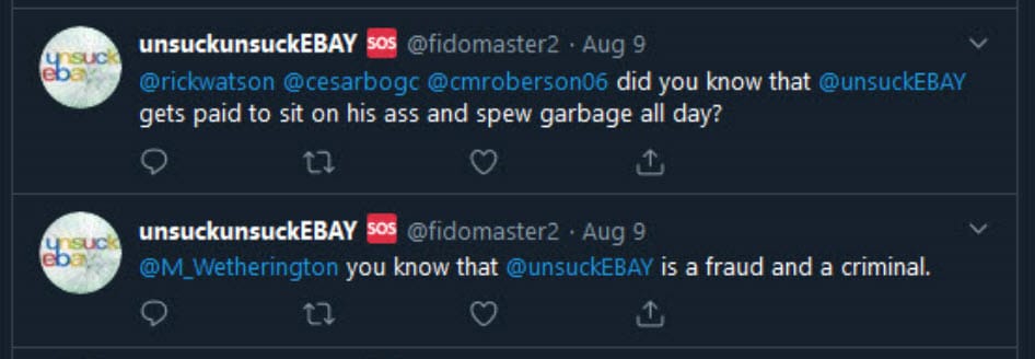 Not only were the security team pretending to be "Marissa", they also created other fake accounts like unsuckunsuckEBAY/ Fidomaster2 which they used to harass unsuckEBAY and others he engaged with frequently.