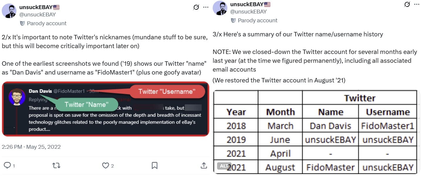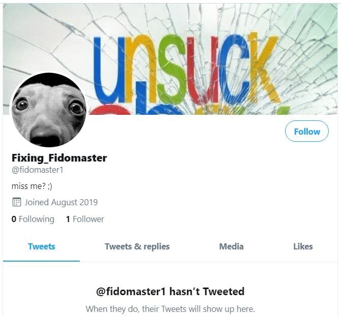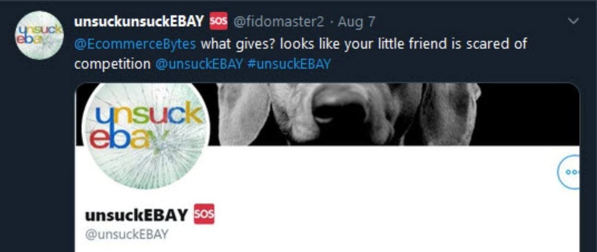 When the real Fidomaster changed his username to unsuckEBAY, Baugh and the eBay security team were even able to take over the original Fidomaster1 account due to a quirk in how Twitter allows usernames to be reused after they've been changed.