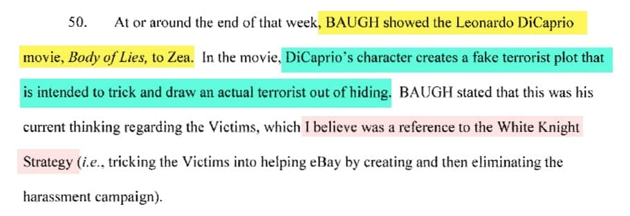 An investigator with the FBI Boston Division's Cyber Crimes Squad even said he believed Baugh used the movie Body of Lies as inspiration for the White Knight Strategy.