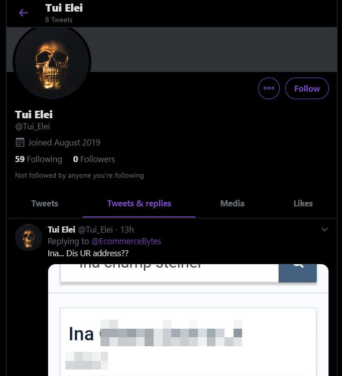 Later that day, the Tui_Elei account posted the Steiners' home address publicly on Twitter, asking "Dis UR address???"