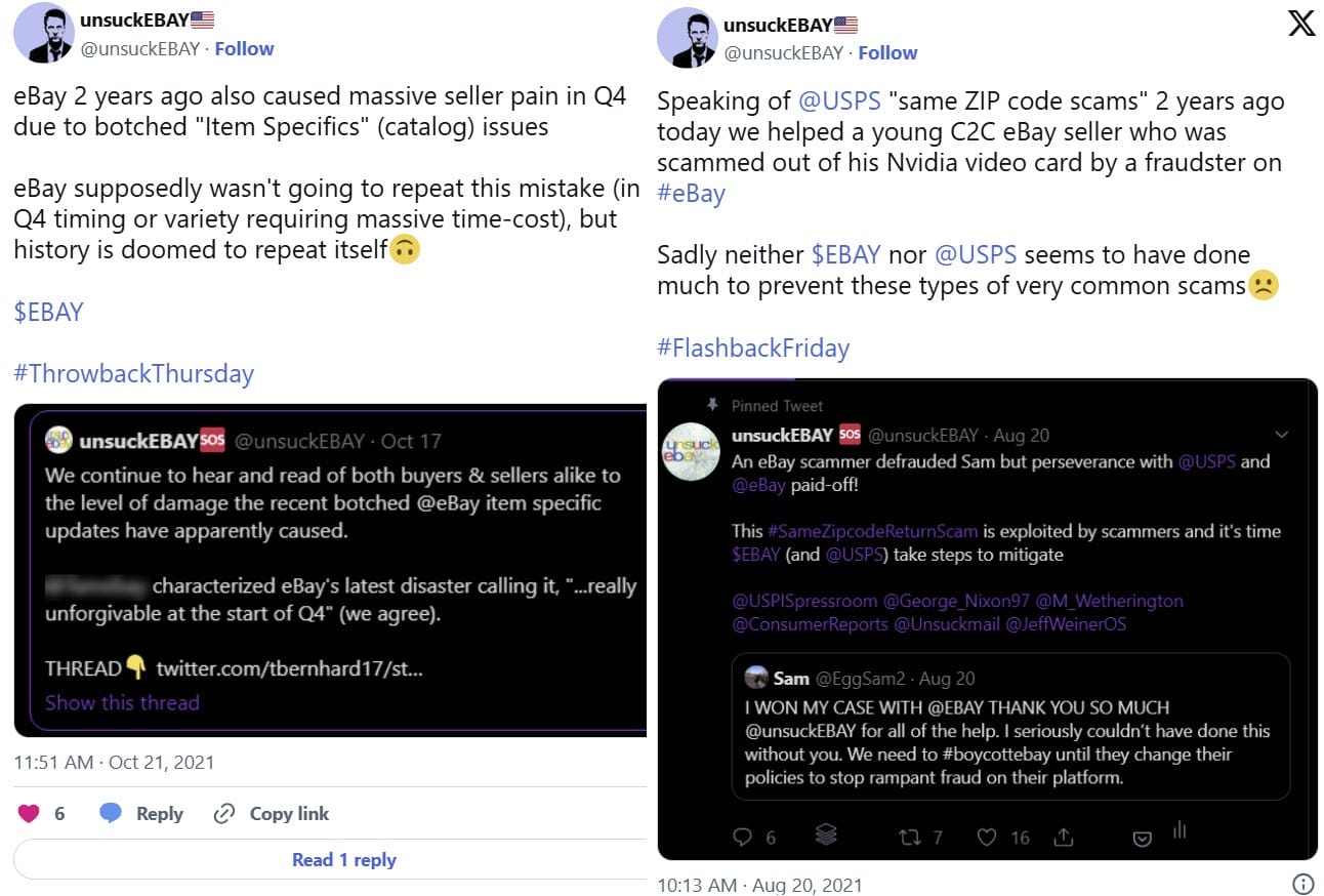 I first encountered an online persona who went by the name unsuckEBAY in 2019 while posting in the eBay community forum in a previous professional role where I managed a $2M+/year eBay account for an ecommerce business which also sold on Amazon and multiple direct websites.