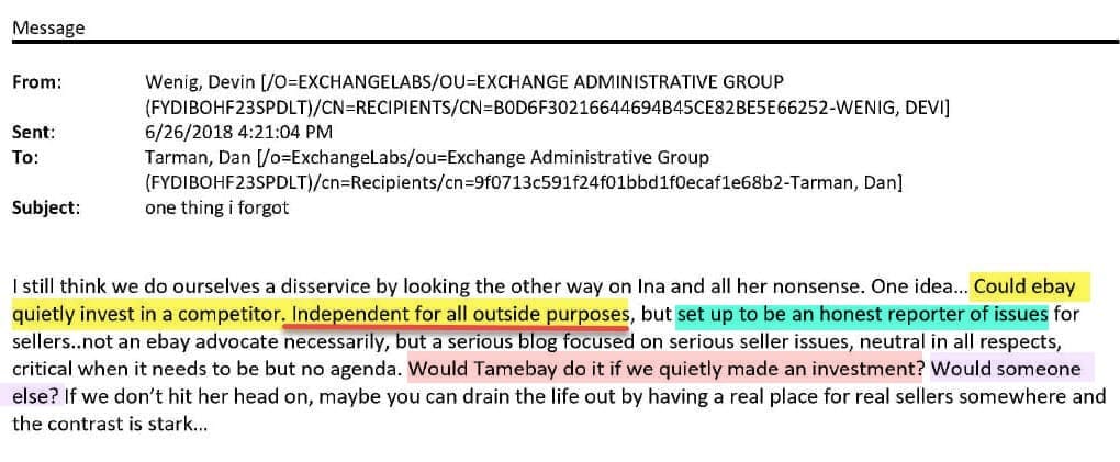 Internally, eBay already had an adversarial posture toward EcommerceBytes, which had been covering both broader corporate and financial news and the experiences of sellers on eBay and other marketplaces since 1999.
