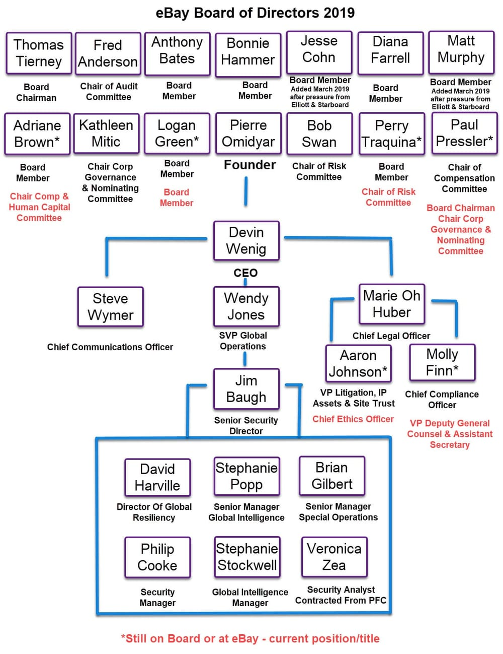 There are still 4 current Board members who were serving alongside Omidyar when the scandal happened - including Paul Pressler, who as Chair of the Compensation Committee in 2019 would have been pivotal in decisions about Wenig's exit package and clawbacks and who now serves as Chairman of the Board.