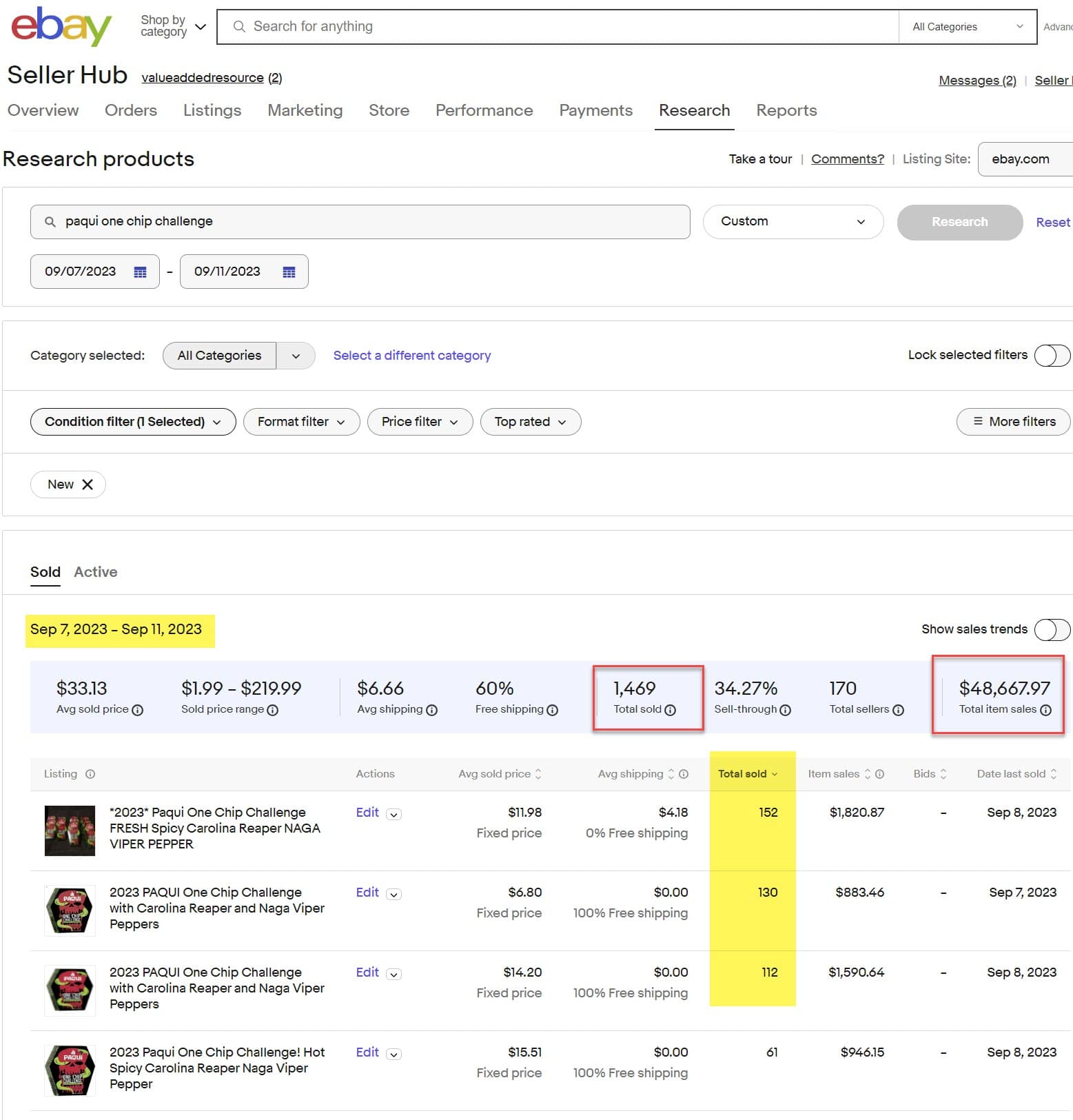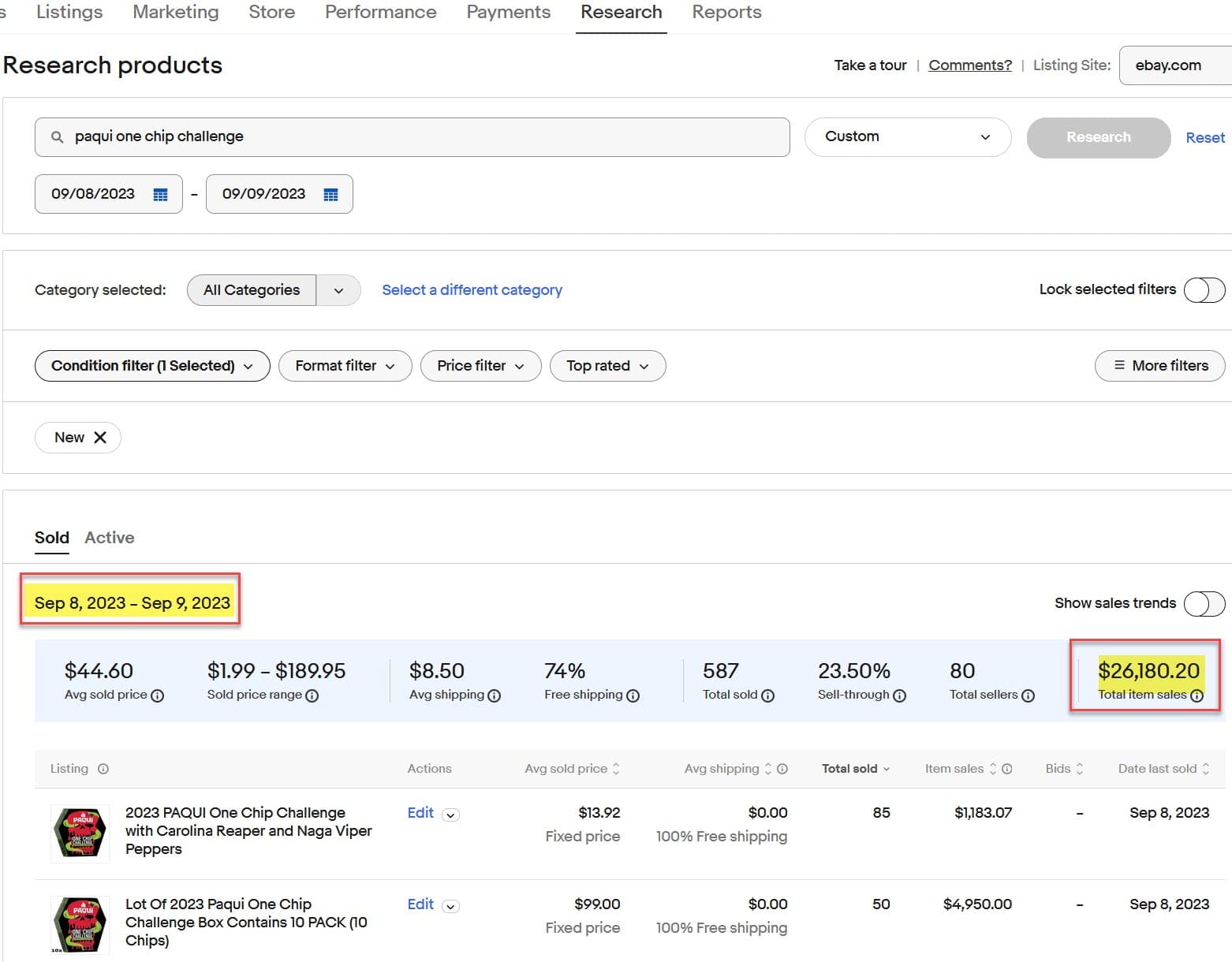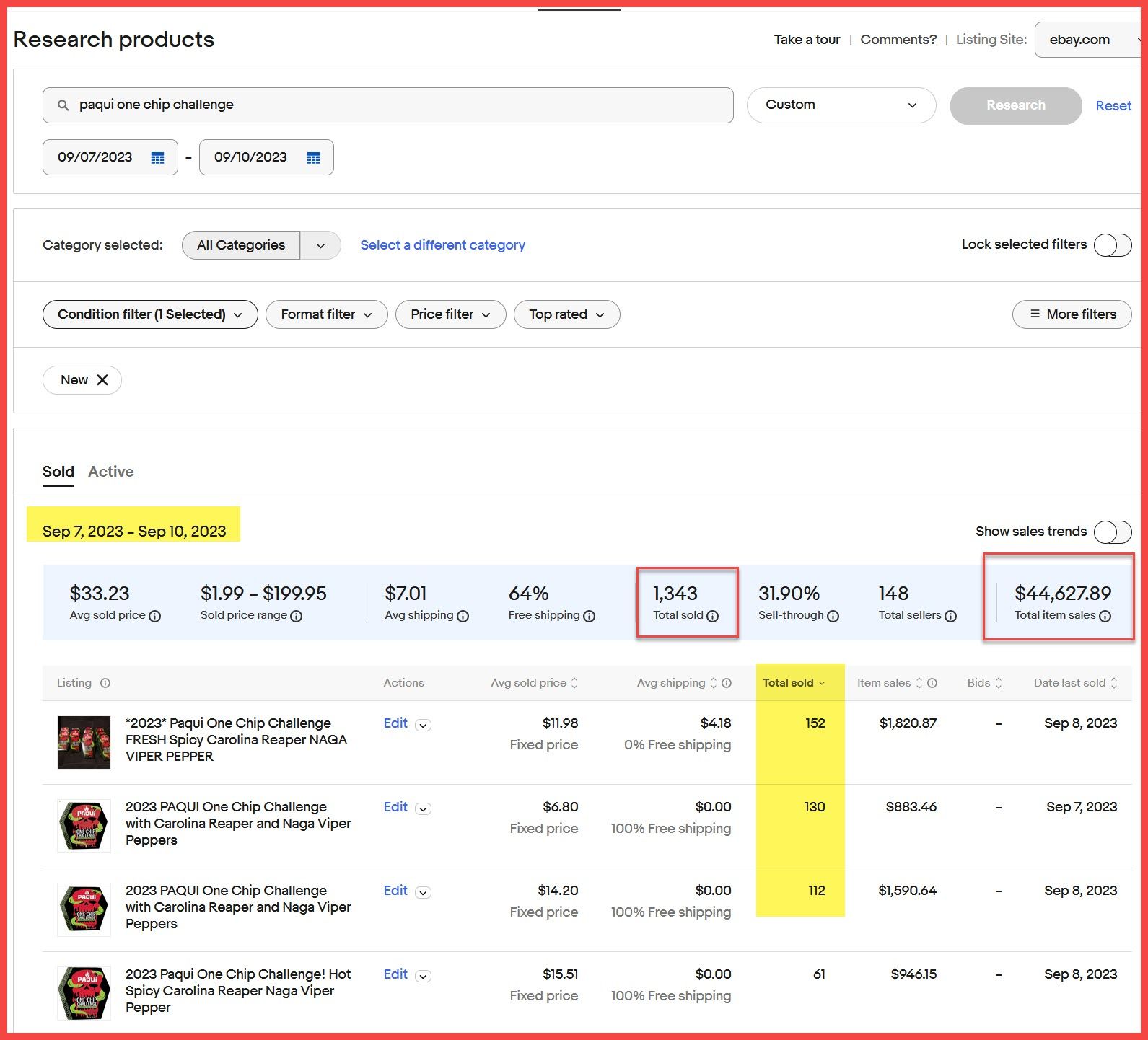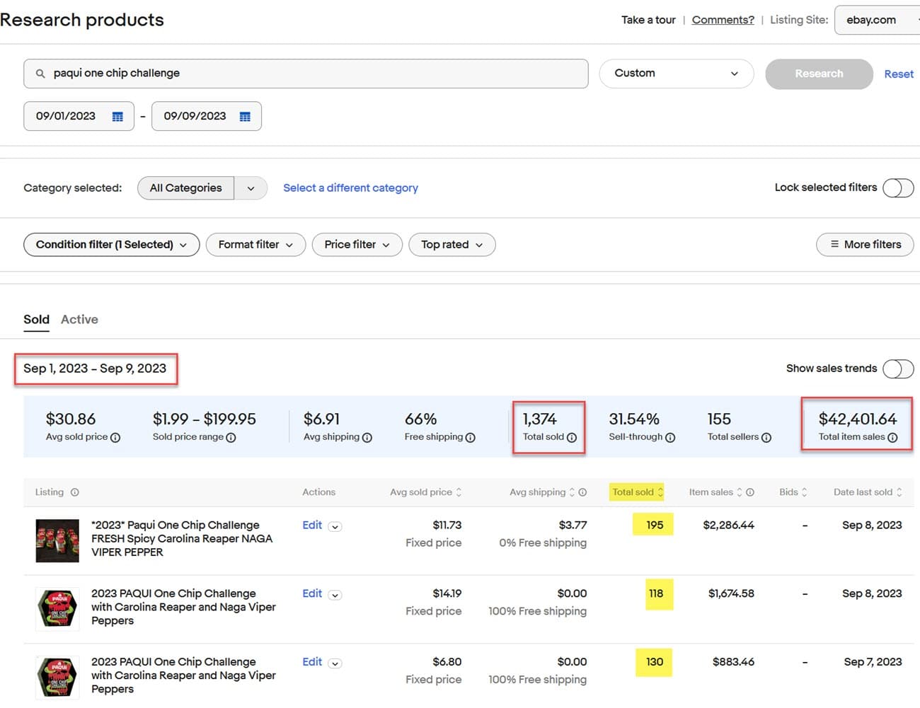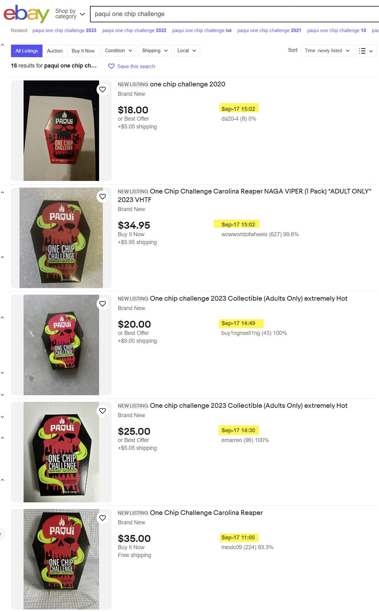 And eBay's own Terapeak research tool shows over $48,000 in sales since Paqui pulled the product from shelves on September 7, with some listings selling over 100 units.