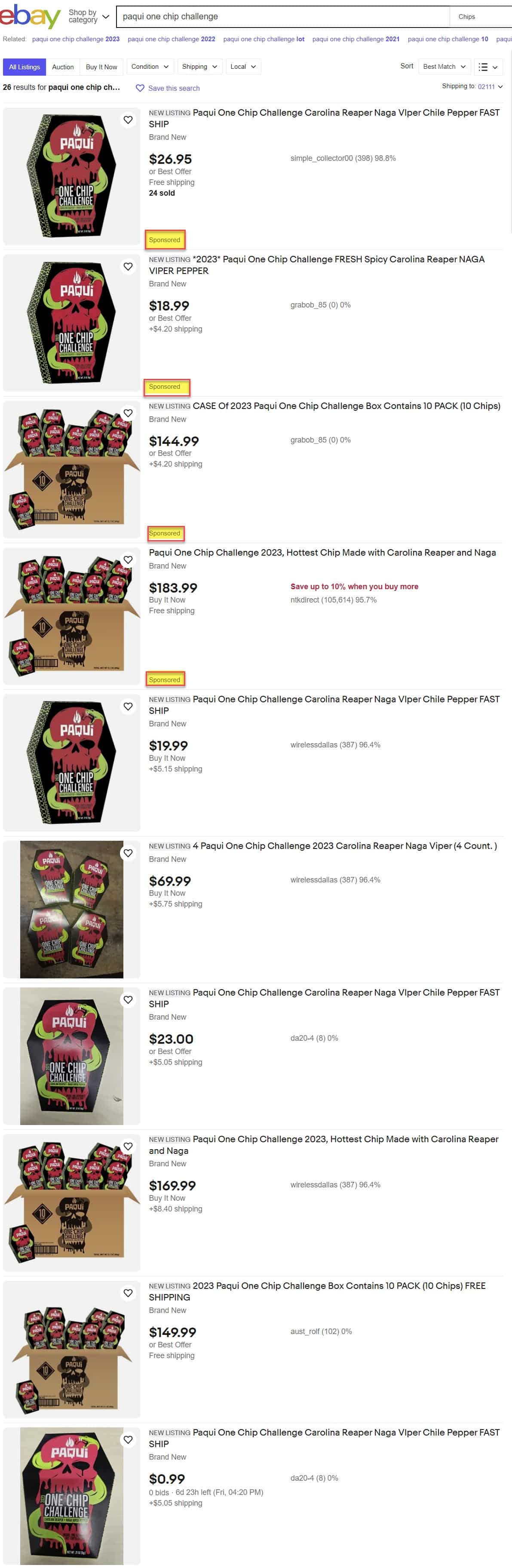 eBay continues to allow new listings and sales of the Paqui One Chip Challenge product that has been removed from retail shelves due to safety concerns.